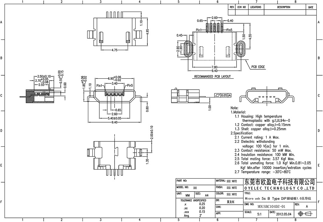 MICRO USB插座